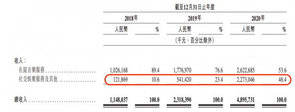 这其中相当一部分,归功于社交娱乐服务收入,被网易云后知后觉的业务,近年来保持着惊人的增长率,2020年营收贡献上几乎与在线音乐服务收入持平。