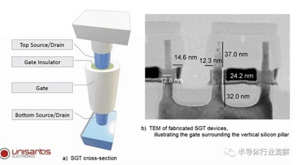 在DFM开发的过程当中,垂直环绕门晶体管(SGT)技术充当着重要的角色。据介绍,垂直SGT为最终的电路实现提供了几个关键特性:与平面和FinFET晶体管相比,提高了面密度;由于对晶体管通道的周围栅极进行了强大的静电控制,因此降低了泄漏功率,针对最终应用优化晶体管宽度和长度尺寸,无论是高性能还是极低的功耗。