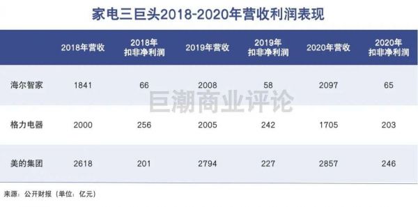 以2019年为例,海尔智家的营收站上2000亿元大关,与格力基本打平,与美的营收也只差800亿元左右。但海尔智家的扣非净利润只有57.65亿元,远低于格力的241.72亿元和美的227.24亿。