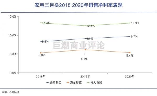 从销售净利率数字来看,海尔智家2019年的净利率只有6.14%,而同期美的净利率为9.09%,格力的净利率高达12.53%。