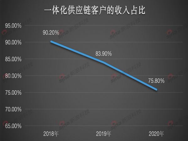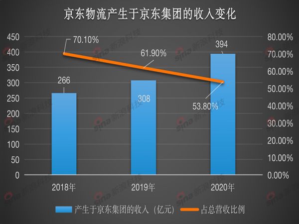 2018年至2020年,产生于京东集团的收入分别为266亿元、308亿元和394亿元,分别占收入的70.1%、61.9%和53.8%。