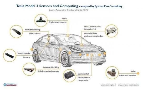 因此Model 3全车一共安装了9颗摄像头,其中有6颗摄像头配合毫米波雷达和超声波传感器用于感知车辆周围环境,从而实现足够智能的驾驶辅助功能。
