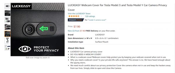 虽然特斯拉当时声明这颗摄像头没有任何用处,但仍有不少车主担心自己的隐私被泄露,毕竟特斯拉在没有通知他们的情况下就开启了摄像头的监控功能。于是在电商平台上一款专门用于Model 3的摄像头盖板悄然热销了起来: