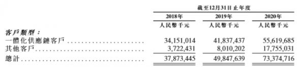 数据显示,过去三年,京东物流来自一体化供应链客户的收入分别为341.5亿、418.37亿和556.20亿元,占总收入的比重分别为90.2%,83.9%和75.8%。