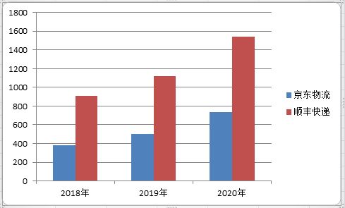 京东物流与顺丰快递收入情况对比(单位:亿元)