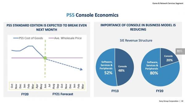 索尼的报告里倒是没有直说PS5的成本控制状况,但给出了一个数字:预计到2021年6月,PS5的成本会低于批发价——终于不用再亏本卖主机了。