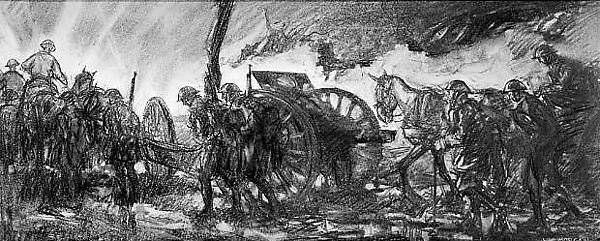 华莱士·摩根(Wallace Morgan)的《世界大战》(World War)。作者曾作为美军的随军艺术家参与“一战”,创作了许多描绘战争生活的作品(来源:metmuseum.org)