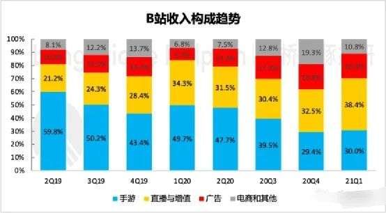在数据层面,B站的爆发力强,拉新、用户粘度等表现较好。据最新公布的2021年一季报,一季度月均活跃用户达2.23亿,同比增长30%。