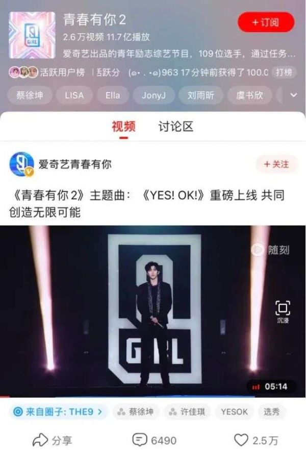 随刻上的《青你2》频道