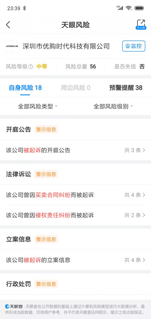 根据企业信用软件显示,该公司有多条风险信息,以及侵权责任纠纷、买卖合同纠纷。同时该公司共有5条行政处罚,处罚事由均为产品(商品)质量违法行为,处罚总金额超6万,并被没收违法所得和非法财物。