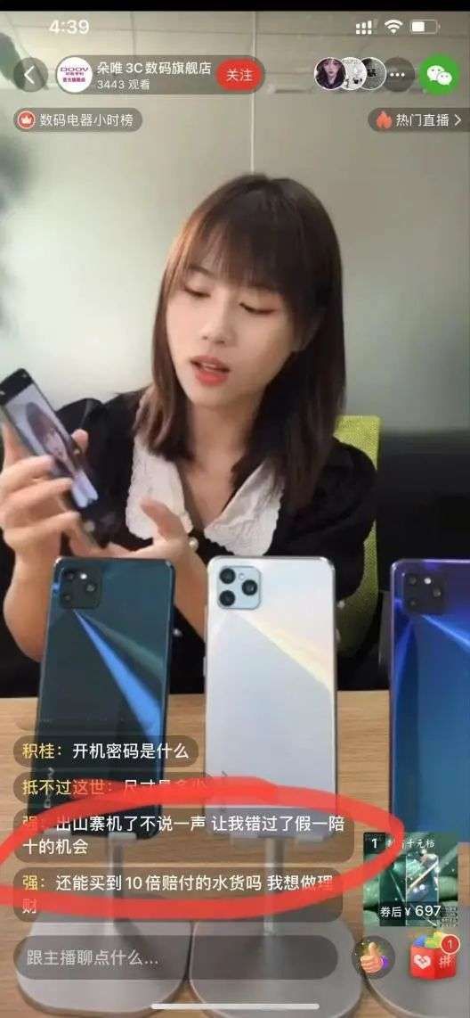 一方面,主播本身对货品质量的把控并不那么严格,而且,一部分主播带货只看坑位费和佣金高低,而不在意货品质量;另一方面,直播间的部分用户与山寨机用户匹配度更高。三四线城市的年轻群体,购买手机时,既想要高配,预算又有限,更重要的是,他们都有大把时间刷直播。