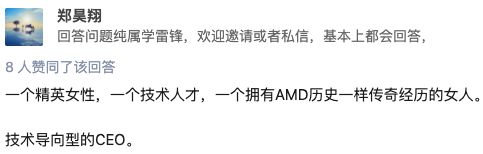 网址: 苏妈yes:苏姿丰7.31亿票留任AMD董事会,支持率高达99% http://www.xishuta.cn/newsview44242.html