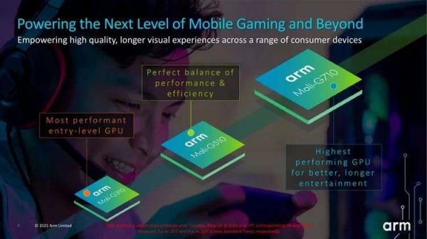 与新的CPU家族一样,ARM新的Mali GPU在命名方式上同样跳过了9代,直接按照定位从高到低的顺序,被命名为Mali-G710、Mali-G610、Mali-G510和Mali-G310。