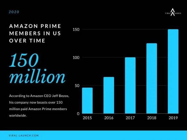2020 年全美 Prime 会员数已达 1.5 亿人,图片来源:Viral-Launch
