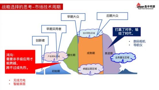 新兴市场还有几个突出特点:第一是受国家政策影响,比如国家禁止白炽灯销售。第二,用户体验极大提升,比如智能手机市场。第三,成本大幅度下降,比如LED灯比荧光灯节能。第四,能否跨越鸿沟。