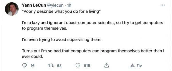 在最新的推文中,Yann LeCun「懒洋洋」地写道。