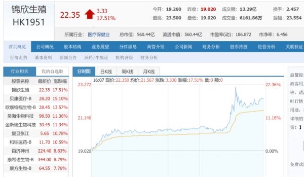消息发布后,辅助生殖、婴童、早教等“三胎概念股”集体飘红,其中锦欣生殖(1951.HK)盘中一度涨超21%,收盘上涨17.51%。