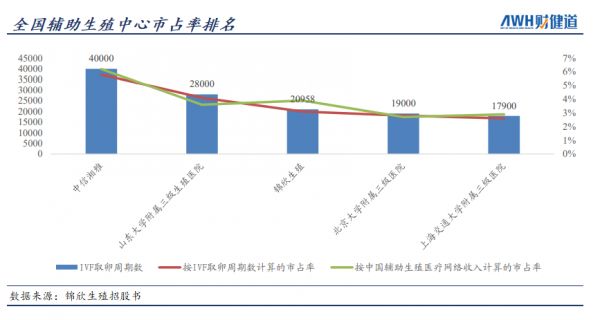 我国民营辅助生殖医院从数量上不到50家,而其中能够提供高端服务、且具备高成功率的医院则更少。做到5000IVF 取卵周期的只有 23 家,其中民营牌照仅有2家——成都西囡、中信湘雅。
