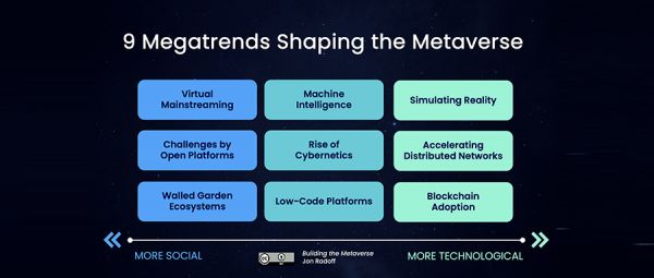 智东西5月31日消息,近日在大型知识型平台Medium上,人工智能行业编辑Jon Radoff发表了关于元宇宙(Metaverse)未来9大趋势的看法。他分别从互联网、代码、区块链、机器智能化等九大方面进行了分析和解释。