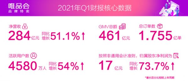 一季报数据显示,唯品会当前总活跃用户数为4580万人;超级VIP用户数达489.1万人,同比增长37%;GMV实现461亿,同比增加60%;而其订单数也从上年同期的1.217亿份增至1.755亿份,同比增长了44%。