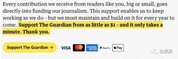 在同业竞筑付费墙的潮流里,《卫报》始终没有砌起付费墙,但也承担着巨额亏损的压力,在2009-2012三个财年均亏损3000万英镑(2.67亿人民币)左右,2016财年更是创下历史新低,亏损5700万英镑(5.07亿人民币)。为了减轻财务压力,2014年卫报建立会员制度,希望会员赞助能解燃煤之急。