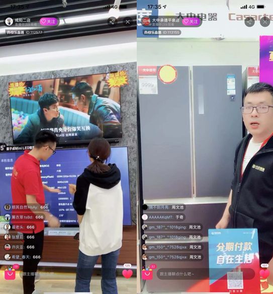 门店里,一些售卖电器的员工在通过APP做线上直播,这是国美向员工提出的新要求。
