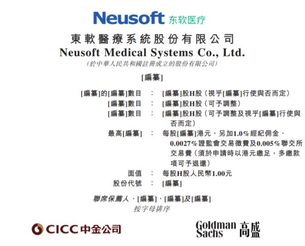 据港交所5月31日披露,东软医疗系统股份有限公司向港交所递交主板上市申请,中金公司与高盛为其联席保荐人。