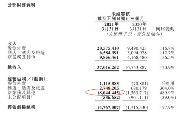 2021年Q1季度,美团以新业务80亿的单季亏损,换来了令资本市场感到满意的用户涨幅。