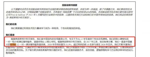 5月20日,掌门教育向SEC递交招股书,拟在纽交所上市。招股书中表示:根据弗若斯特沙利文报告,掌门教育已成为国内最大的在线K12一对一课后辅导服务供应商。