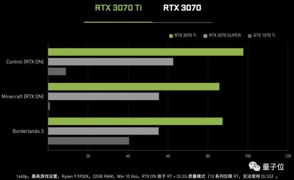 RTX 3070Ti的性能,是之前的RTX 2070 Super的1.5倍,比GTX 1070 Ti提升2倍。