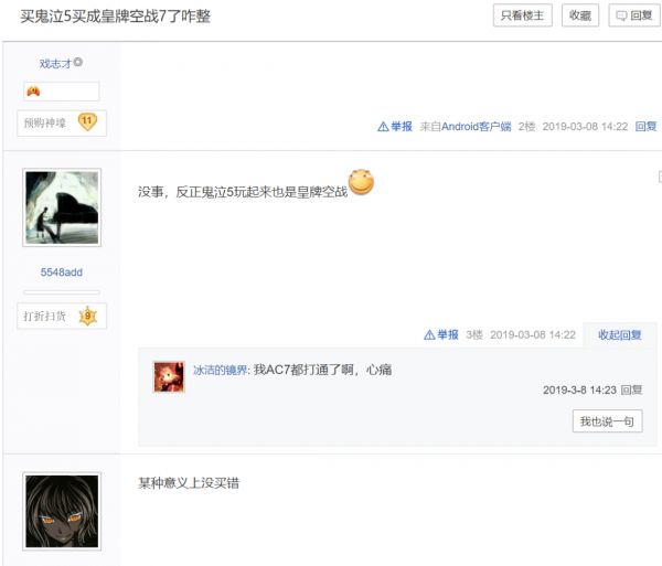 贴吧中关于鬼泣皇牌空战的调侃