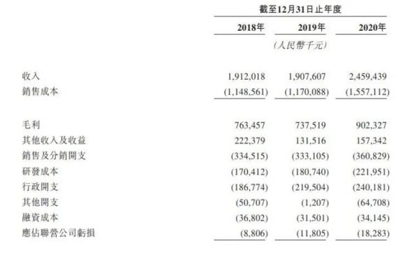 招股书显示,2018年至2020年,原材料成本分别为9.6亿元、8.76亿元和12.49亿元,占公司销售成本的83.5%、74.9%及80.2%,占比营收的50.2%、45.9%及50.8%。
