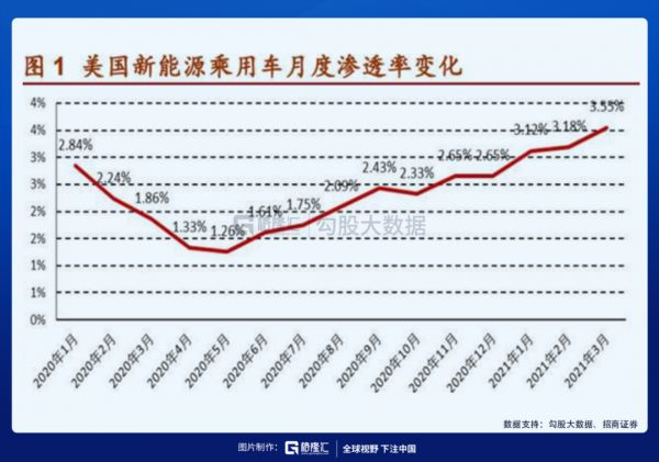 根据招商证券数据,当下美国新能源乘用车的月度渗透率还只有3.55%,离50%的目标还有很大的上升空间,明年的美国电动车市场,类似于去年的欧洲,会带动全球新一轮高增长。