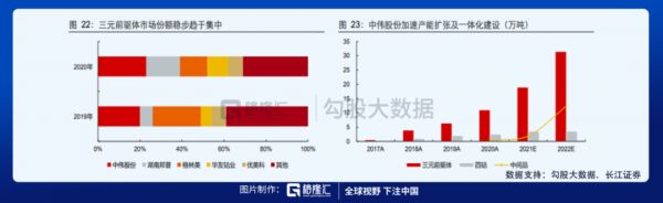 四大材料中,正极前驱体和负极格局虽然排在隔膜、电解液之后。但各自CR3相对集中,且三元正极前驱体和负极企业的全球化是做的最好的。以2020年的数据,国内企业占全球的出货量份额估算下来接近80%,所以海外电池厂的放量也对其形成了很大的利润支撑。