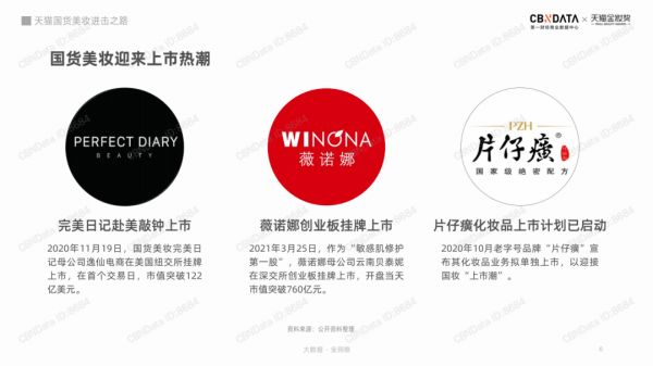 近几年,完美日记、片仔癀、微若娜等美妆品牌相继成功上市。