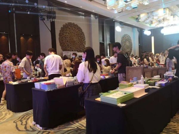 辛选集团天猫618选品会上,忙碌的美妆产品选品区。