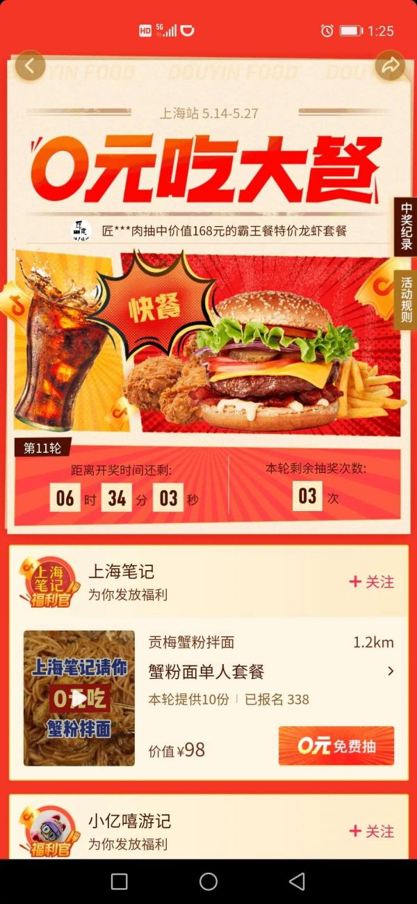 5月中下旬,抖音推出“零元吃大餐”,对标的正是大众点评的传统优势项目“霸王餐”(现名“免费试”)。