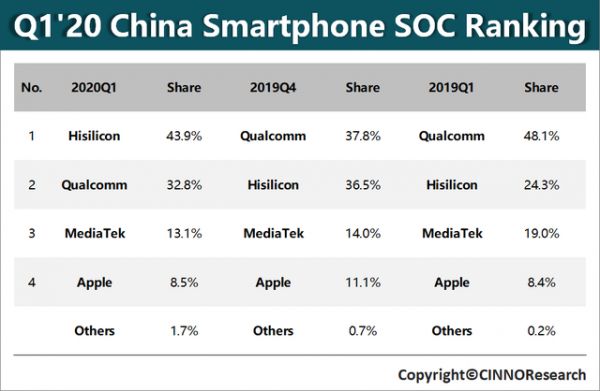 2020年,根据 CINNO Research 的半导体产业报告显示,华为海思首次超过高通,以 43.9%的市场份额成为国内市场出货量最大的芯片品牌,反超高通11个百分点。因此,“华为手机养大了海思芯片”这种说法并不为过。