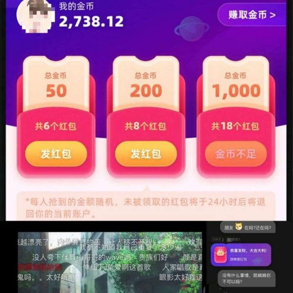 目前,发的红包数仅有6、8、18等三种,金币可通过相关活动赚取。暂时还不清楚金币是否为B站的B币,B币可用来打赏UP主。