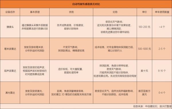 当前广泛应用的传感器主要包括摄像头和雷达,其中: