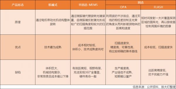 从产品形态看,激光雷达目前有机械式、半固态和纯固态三条路线:
