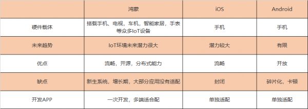 首先要了解这三类操作系统的区别,以及各自的优缺点才能进行分析。对于鸿蒙搭载的硬件载体,除了手机外,开可以搭载智能家居、汽车、手表等众多设备,但由于其还处于开发阶段,大部分应用还没得到适配;而IOS和安卓都是以手机为主,IOS虽不开源但很流畅,安卓则是开源状态但使用时会出现卡顿的状况。