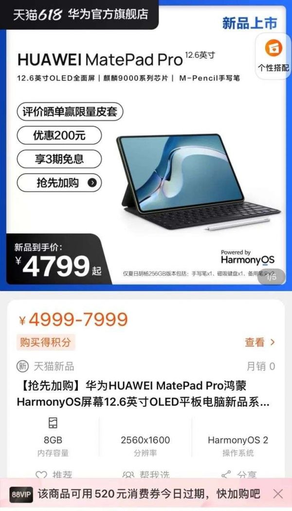发布会上,另一个备受关注的新品是MatePad Pro。这两款产品都已在华为天猫店上架。华为Watch 3是6月11日零点正式开售,并为消费者提供100元优惠。MatePad Pro6月10日0点开售。