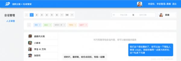 企业通过语鹦企服开通会话存档,在合规存档员工工作沟通内容,并经客户授权同意后,即可在后台人工审查员工内部、员工与客户私聊、员工所在客户群聊中的所有聊天记录。