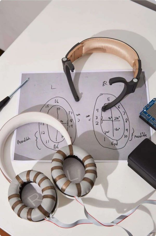 这款耳机看起来,就是一款普通无线头戴式耳机。拆开耳罩处的织物才明白,Neurable 在两边的耳罩里各植入了 8 个脑电图(EGG)传感器。据介绍,当你戴上耳机,它就会一直探测你大脑的活动状态。