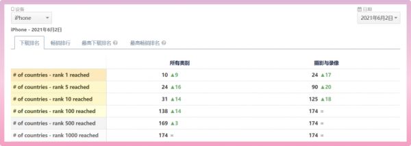 截至目前,已经成功登上 174 个国家和地区的 iOS 下载榜 Top100 以及 170 个国家和地区的畅销榜 Top100。
