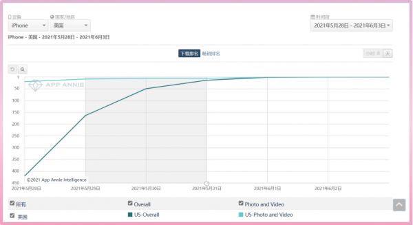 2021 年 6 月 2 日,修图 App 「VSCO」登顶美国 iOS 下载总榜。