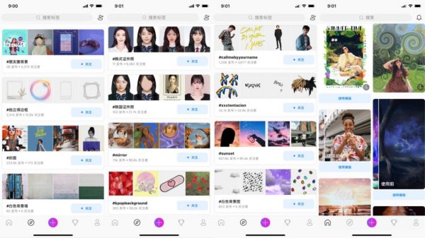 再进一步的操作是,一些修图 App 会在应用内显示目前 Instagram 以及 Pinterest 等平台中的热门元素,并制定出相应的模板,方便用户一键 get 社交媒体热点同款。