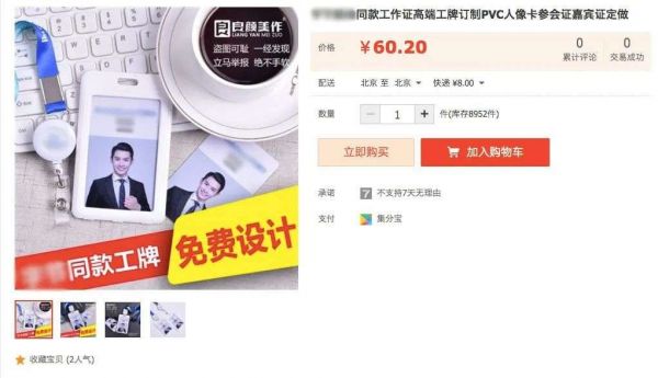 更好玩的是,市场还真的发展出售卖该公司工牌产业,淘宝上搜索「XX工牌」,出售该产品商家不止一家,价位从2元到60元不等,灰色产业出现足够证明大厂崇拜的需求能演化到真金白银牟利程度。