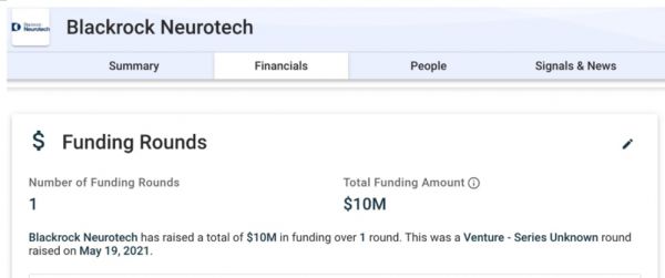 在5月下旬该笔交易被披露之前,这家名为Blackrock Neurotech在互联网的世界里几乎处于查无此人的状态,甚至这笔1000万美元的投资是该公司自2008年成立以来的第一笔融资。